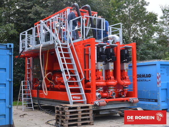 This latest and largest combination, with a capacity of up to 2500 liters per minute, features a 7.3-meter-long container. The accompanying HDPE pipes are relatively lightweight and minimized in size, allowing this unit to be set up very quickly without the need for a crane.