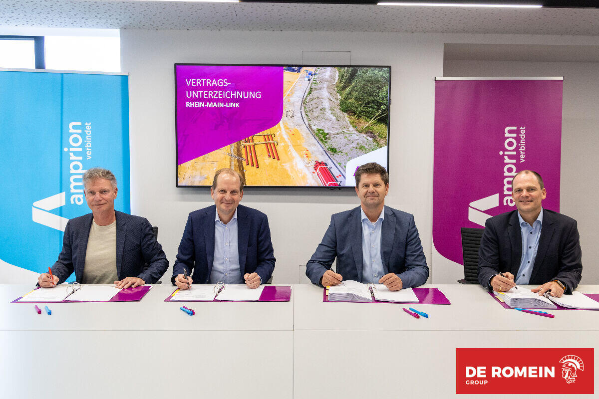 On Monday, 23 September 2024, a big celebration was held to mark the signing of the contract between the joint venture De Romein Group/Eiffage Infra-Bau and the transmission system operator Amprion for the civil engineering services for the Rhein-Main Link project