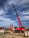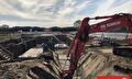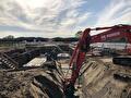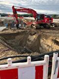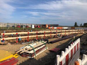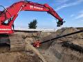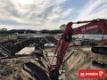 After the high-voltage joints are completed, we sealed the pits and restored the surface back to its original condition. To install the sheet pile wall, we utilized our Sennebogen 653 E.
